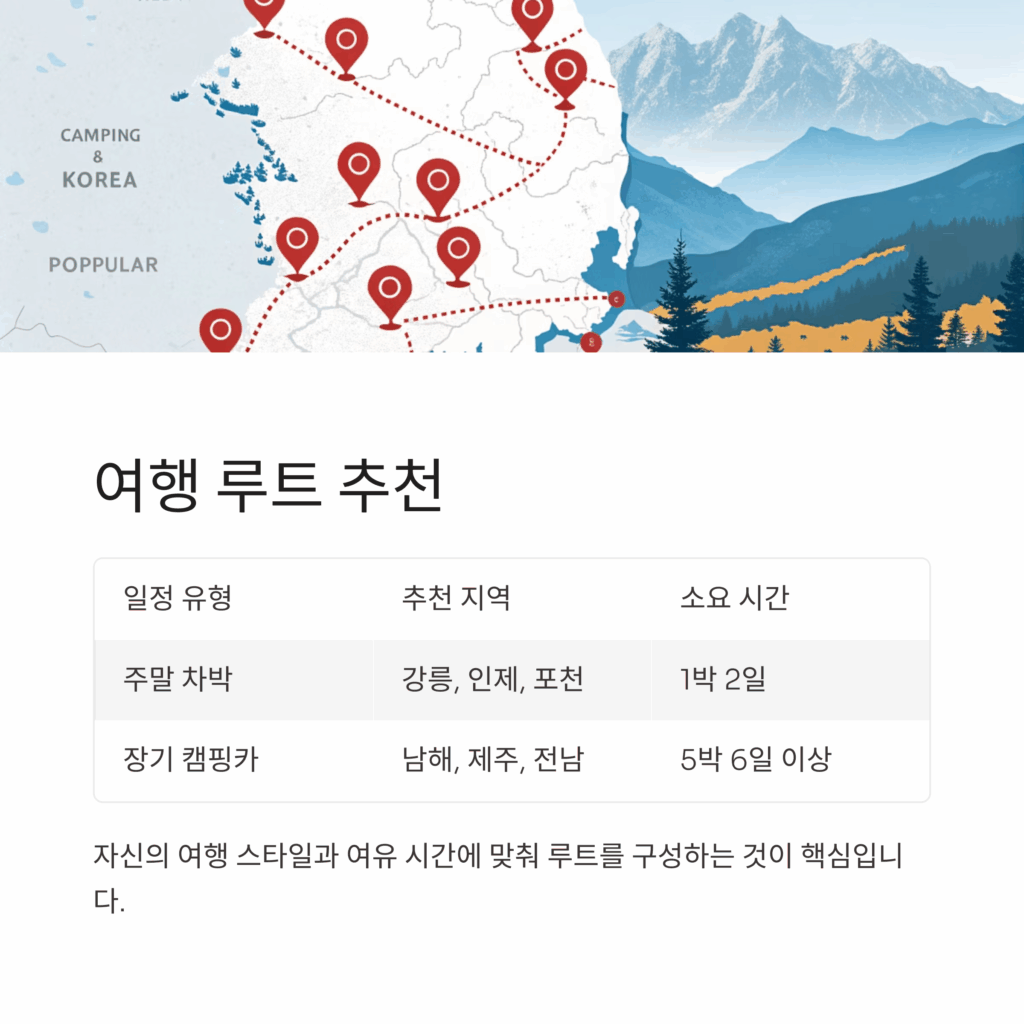 실제 여행 루트 예시: 짧은 일정부터 장기 캠핑까지