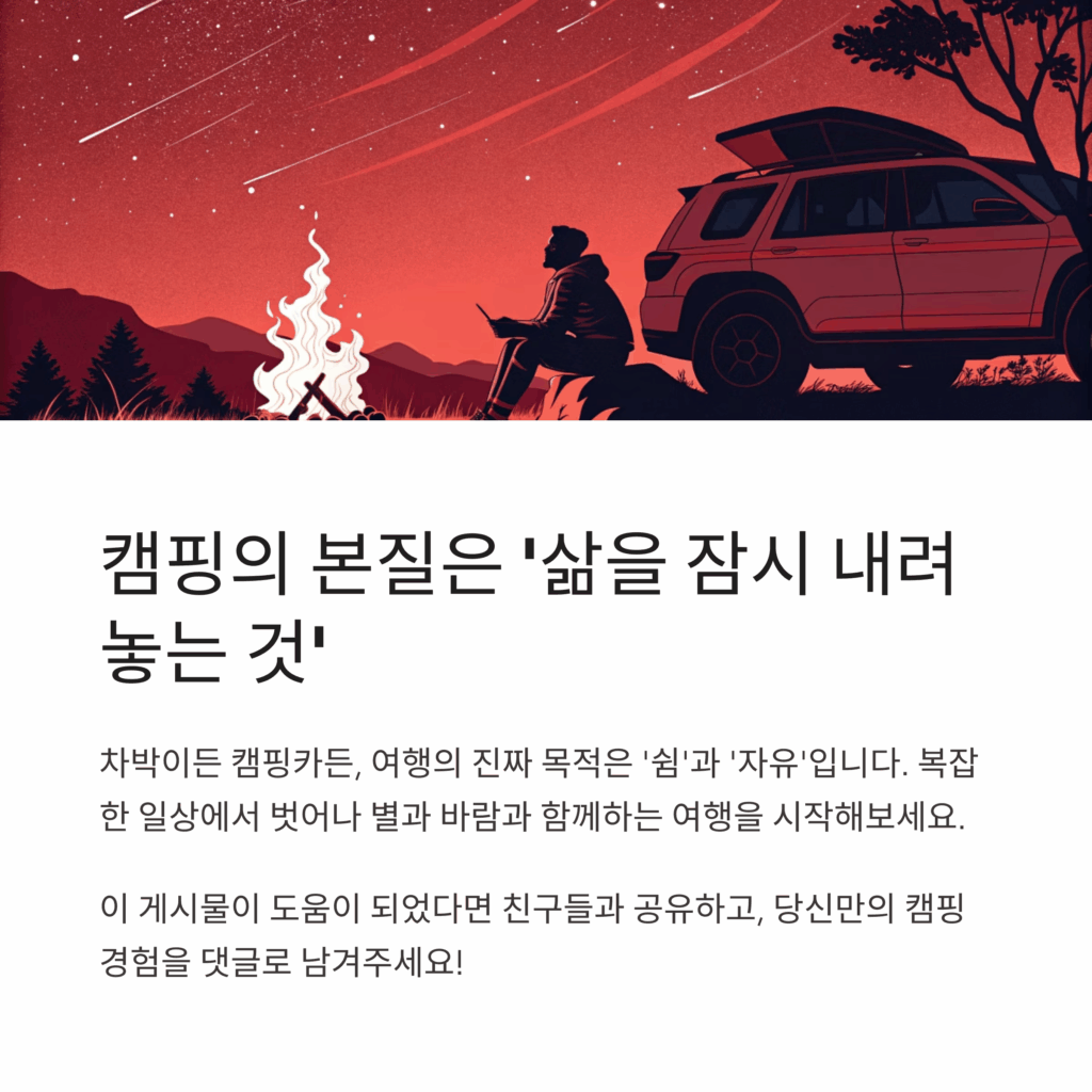 차박이든 캠핑카든, **여행의 진짜 목적은 ‘쉼’과 ‘자유’**입니다.
